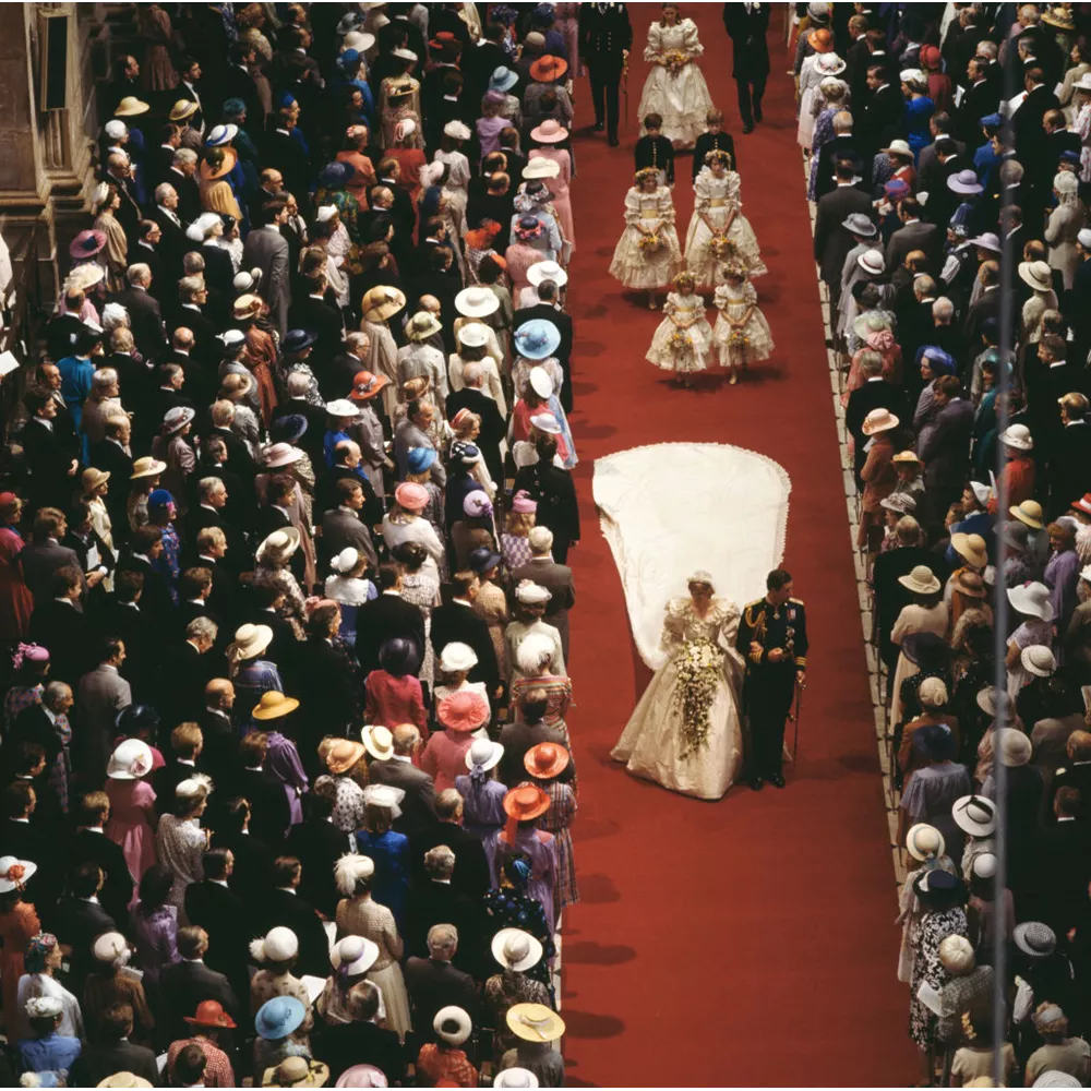 Το ivory νυφικό της φόρεμα δημιουργήθηκε από τους David και Elizabeth Emanuel.