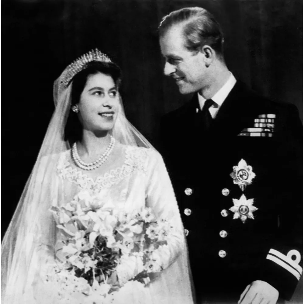 Γνώρισε επίσημα τον πρίγκιπα Φίλιππο σε ηλικία 8 ετών, το 1934 στον γάμο της πριγκίπισσας Μαρίνας της Ελλάδας και του δούκα Γεώργιου του Κεντ. Στον δικό της γάμο, η βασίλισσα είχε 8 παράνυμφους. Τις Princess Margaret, Princess Alexandra of Kent, Lady Caroline Montagu-Douglas-Scott, Lady Mary Cambridge, Pamela Mountbatten, Margaret Elphinstone και Diana Bowes-Lyon.