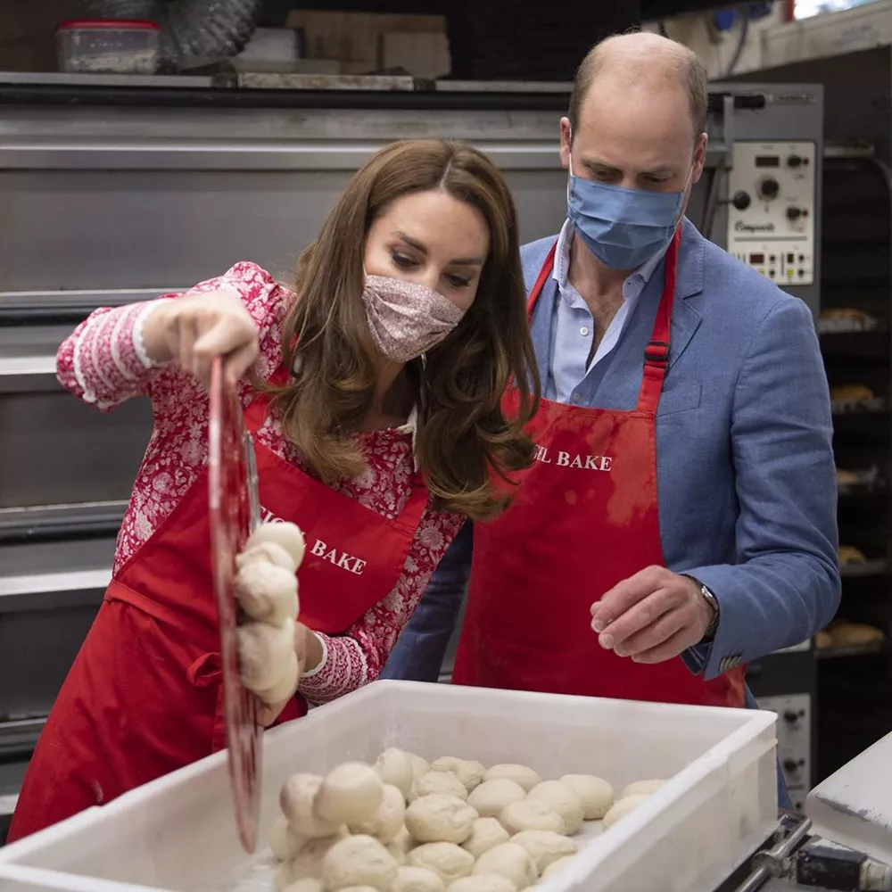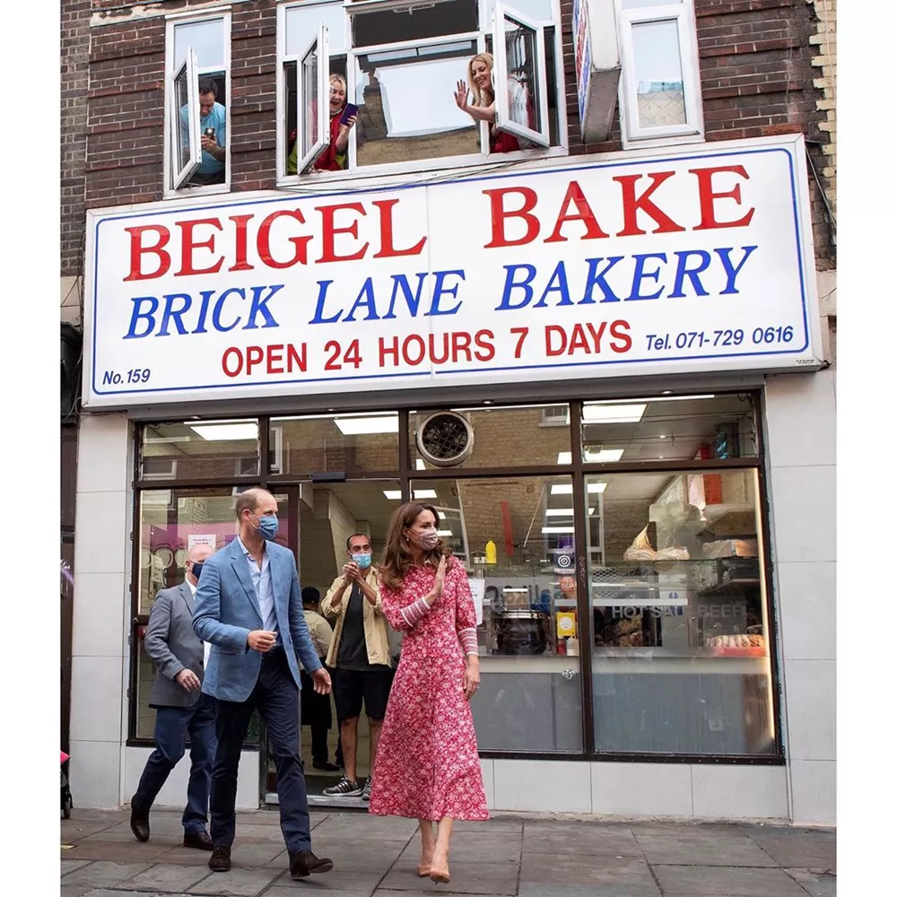 Το ζευγάρι, μεταξύ άλλων, βρέθηκε να ζυμώνει στο φημισμένο Brick Lane Beigel Bakery στο Ανατολικό Λονδίνο, και εκτός από την ευχάριστη ατμόσφαιρα, όλοι πρόσεξαν το κομψό φόρεμα της δούκισσα του Cambridge. H Middleton για την περίσταση είχε επενδύσει σ' ένα ρομαντικό φλοράλ shirtdress σε κόκκινο χρώμα από τη συλλογή του λονδρέζικου brand Beulah London, ενώ το συνδύασε με tan γόβες Ralph Lauren. Φυσικά, ο Δούκας και η Δούκισσα φορούσαν τις απαραίτητες μάσκες προστασίας προσώπου.