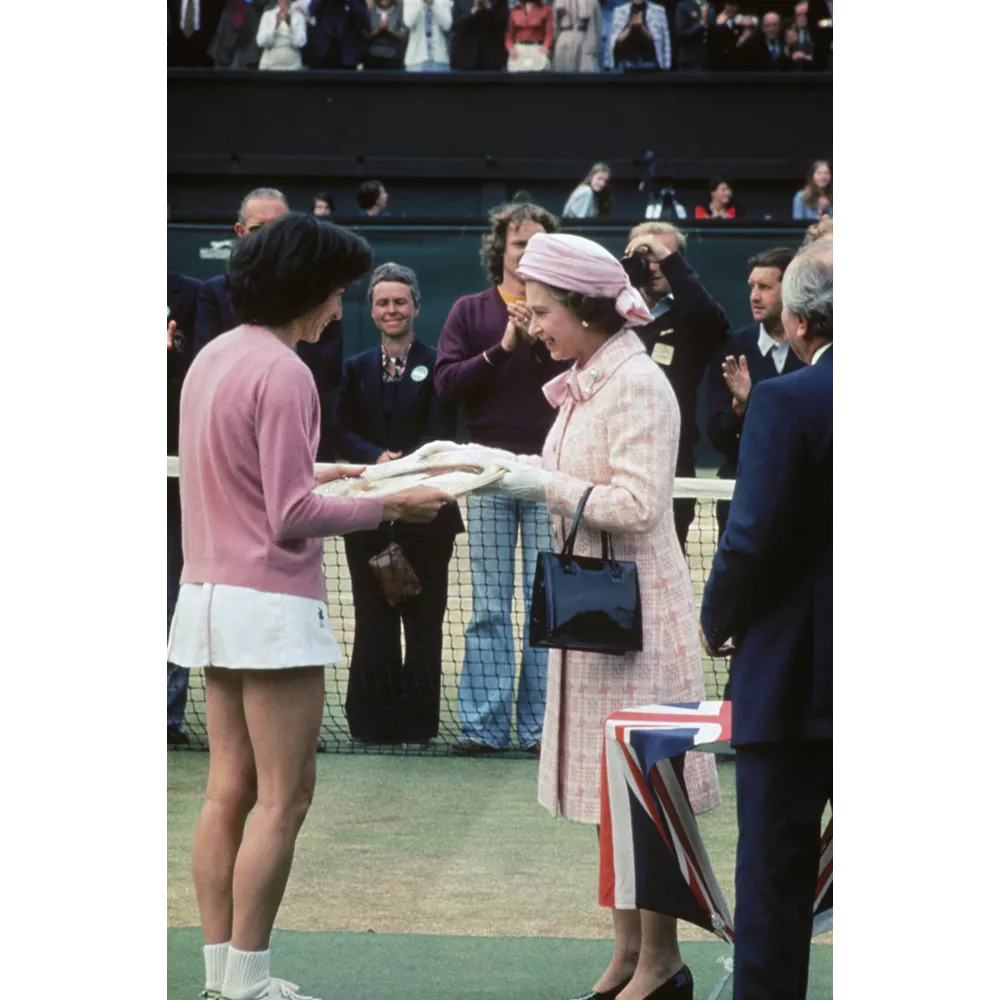 Η βασίλισσα Ελισάβετ δίνει το τρόπαιο στη βρετανίδα Virginia Wade το 1977.