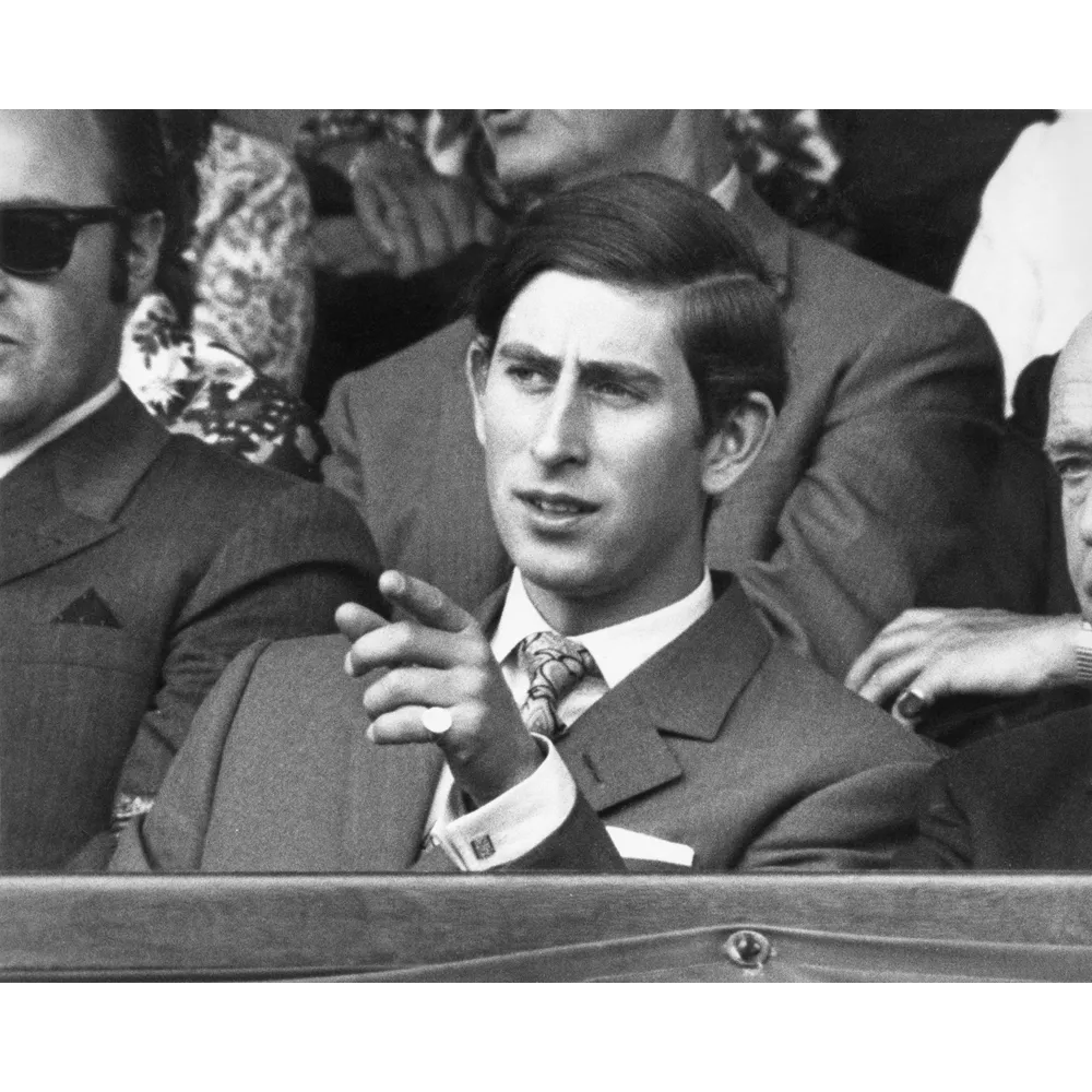 O πρίγκιπας Κάρολος παρακολουθεί με ενδιαφέρον τον αγώνα στο Wimbledon το 1970.