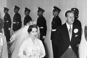 To νυφικό της Kitty έμοιαζε σαν μια εκσυγχρονισμένη εκδοχή του φορέματος της μητέρας της με περισσότερα κλασικά στοιχεία, όπως η δαντέλα, αλλά είχε επίσης ψηλό λαιμό, κουμπιά στο μπροστινό μέρος και puffy μανίκια.