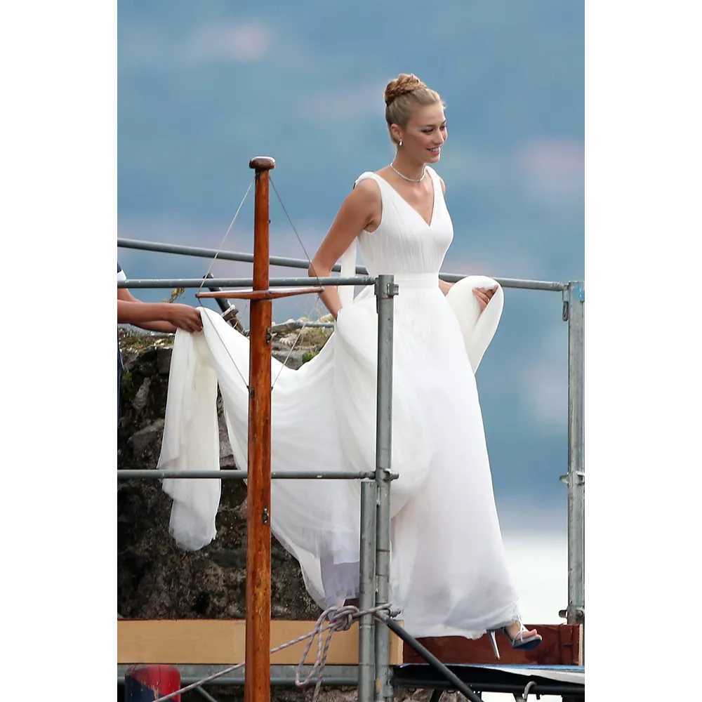Με το υπέροχο Armani Privé νυφικό της, το τέταρτο που φόρεσε συνολικά ως νύφη και δεύτερο στο θρησκευτικό γάμο της στην Ιταλία.
