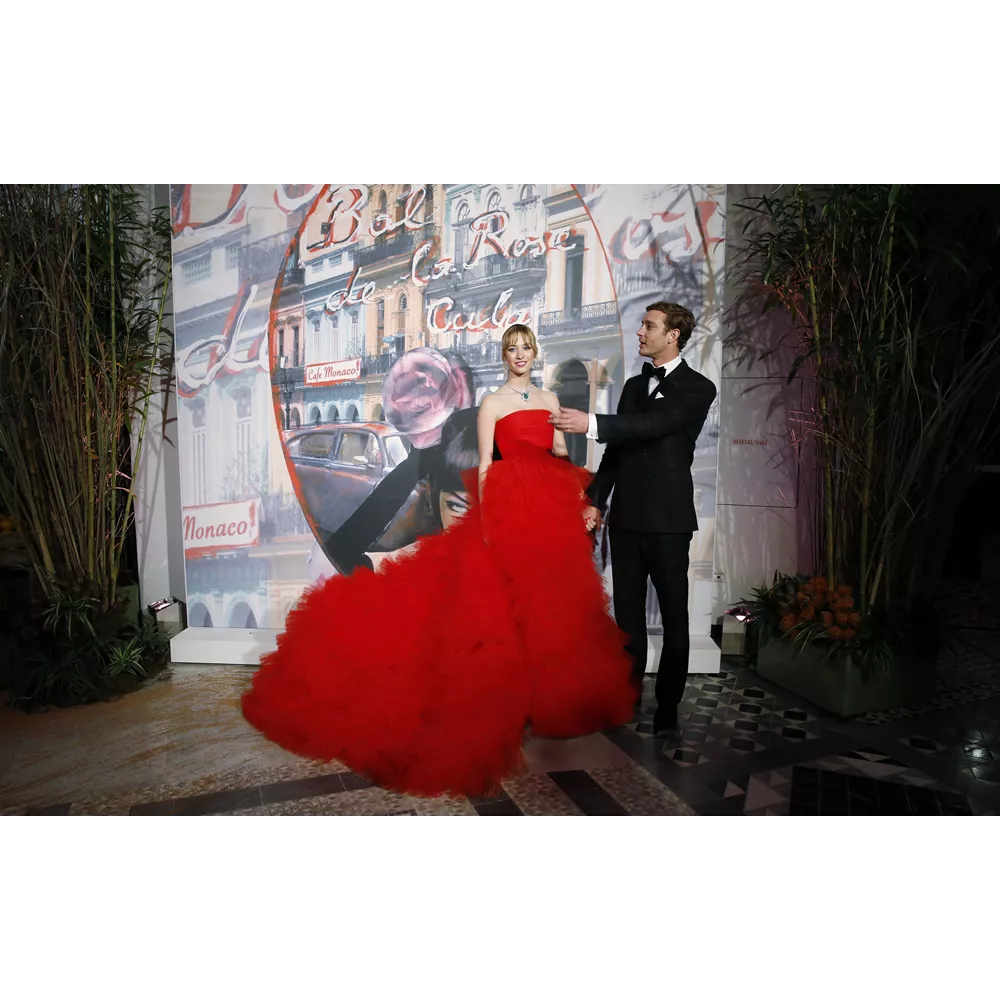 Με εντυπωσιακή κόκκινη τουαλέτα Giambattista Vall στον ετήσιο χορό Rose Ball στο Μόντε Κάρλο, το 2016.
