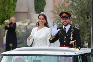 Για την περίσταση η βασίλισσα Rania επέλεξε ένα ροζ σύνολο Oscar de la Renta. Το μάλλινο μίντι φόρεμά της είχε δαντελένιες λεπτομέρειες στα μανίκια ενώ το συνδύασε με ασορτί γόβες και τσάντα Dolce & Gabbana.