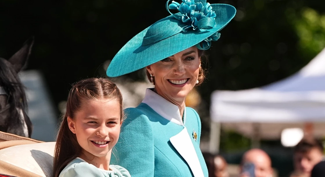 Το πρώτο μέρος της τελετής περιελάμβανε τη μεταφορά των μελών της βασιλικής οικογένειας από το Παλάτι του Μπάκιγχαμ στην Παρέλαση της Ιππικής Φρουράς. Κατά τη διάρκεια αυτού του ταξιδιού, η Κate Middleton ήταν πολύ κοντά στα παιδιά της, κάτι στο οποίο μας έχει ήδη συνηθίσει. Κάποια στιγμή, γύρισε προς την κόρη της, την οποία κοίταξε τρυφερά, χαμογέλασε και της κράτησε το χέρι.