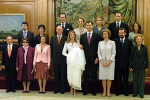 Ο βασιλιάς και η βασίλισσα της Ισπανίας εμφανίστηκαν με γκρι κοστούμια και οι δύο με σταυρωτό σακάκι και ορατά κουμπιά. Φορούσαν επίσης και οι δύο μοκασίνια.