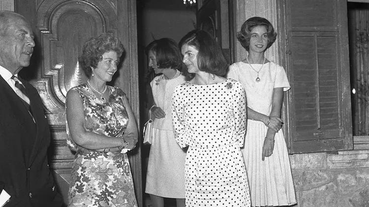H Jackie Kennedy με την τότε βασίλισσα Φρειδερίκη στο Τατόι. Πίσω διακρίνονται η αδελφή της Kennedy Lee Radziwill και η πριγκίπισσα Ειρήνη. (Getty Images/Ideal Image)