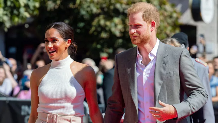 Στη φωτογραφία που τραβήχτηκε σε εξωτερικό χώρο, η 24χρονη χαμογελάει φορώντας ένα πολύχρωμο φόρεμα ενώ ποζάρει ανάμεσα στον Harry και τη Meghan που φοράει ένα λευκό top και μια μπεζ κασμίρ ζακέτα.