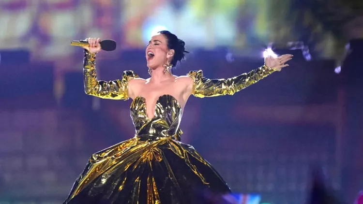 Φορώντας ένα εντυπωσιακό χρυσό φόρεμα σε μία σκούρα απόχρωση, η αγαπημένη τραγουδίστρια του κοινού ερμήνευσε τα τραγούδια "Roar" και "Firework" για το πλήθος που δεν σταματούσε να διασκεδάζει και να χαίρεται τη στέψη του βασιλιά Κάρολου και της άτυπης στέψης της συζύγου του, βασίλισσας Καμίλα.