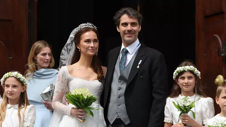Πιο αναλυτικά, η νέα πριγκίπισσα επέλεξε να φορέσει ένα διαχρονικό και εντυπωσιακό Reem Acra νυφικό, με διάφανα μανίκια και λεπτομέρειες από δαντελένια λουλούδια. Ολοκλήρωσε το λουκ της με μία φλοράλ τιάρα που ανήκε στη γιαγιά του πρίγκιπα Ludwig, πριγκίπισσα Irmingard, την οποία είχε φορέσει και η ίδια στον γάμο της το 1950.