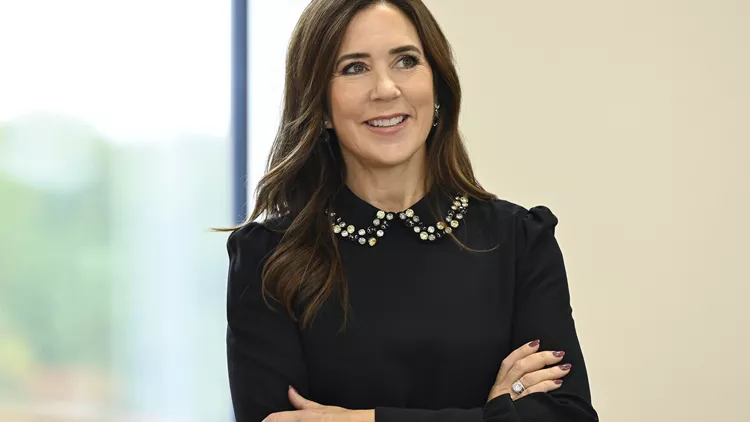 Η βασίλισσα της Δανίας και μητέρα τεσσάρων παιδιών επέλεξε ένα κομμένο και ραμμένο στα μέτρα της blazer Alexander McQueen σε βουργουνδί χρώμα. Το συνδύασε με μεταξένιο λευκό τοπ από το brand The Fold και μαύρο παντελόνι. Ολοκλήρωσε την εμφάνισή της με γυαλιά μυωπίας Gucci, χρυσό κολιέ Halberstadt και δαχτυλίδι από τον οίκο Dulong Fine Jewelry.
