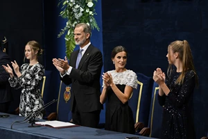 Για την περίσταση η βασίλισσα Letizia επέλεξε ένα κομψό navy blue φόρεμα το οποίο είχε φορέσει ξανά το 2020 και το 2022. Συνδύασε το shirt dress της με εντυπωσιακά κοσμήματα που της έχουν χαρίσει η Σοφία της Ισπανίας και ο Χουάν Κάρλος. Πρόκειται για ένα ζευγάρι σκουλαρίκια και ένα κολιέ με διαμάντια και ζαφείρια το οποίο έχει ένα μεγάλο μαργαριτάρι στη μέση.