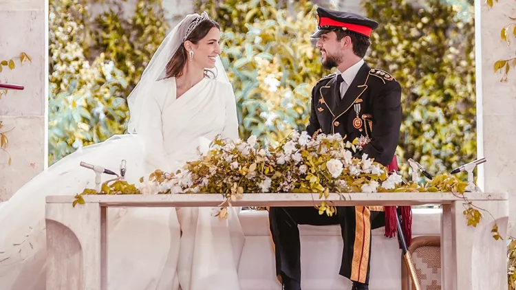 Το φόρεμα που επέλεξε για το Ιωβηλαίο του πεθερού της συνδύαζε την επισημότητα με τη θηλυκότητα. Το διακριτικό ντύσιμο είναι το χαρακτηριστικό της. Η στιλάτη πριγκίπισσα έστρεψε πάνω της τα βλέμματα όταν επέλεξε, πέρυσι, ένα μινιμαλιστικό και ιδιαίτερα μοντέρνο νυφικό με την υπογραφή Elie Saab. Η νυφική δημιουργία είχε ασύμμετρη λαιμόκοψη, μακρυά μανίκια και ουρά με λουλούδια και ήταν απόλυτα ταιριαστή στον καλοκαιρινό της γάμο με τον πρίγκιπα Al Hussein.