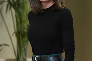 Μια ακόμη μινιμαλιστική πινελιά στο σύνολό της ήταν τα οριζόντια σκουλαρίκια της που ήταν διακοσμημένα με τρία μικρά διαμάντια. Από την εμφάνισή της δεν έλειψε και το δαχτυλίδι Coreterno που έχει συναισθηματική αξία για εκείνη.