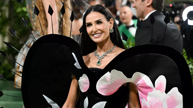 Πέντε χρόνια μετά την τελευταία της εμφάνιση στο Met Gala η Demi Moore κατάφερε να μπει επάξια στη λίστα με τις καλοντυμένες. Η ηθοποιός επέλεξε μια εντυπωσιακή δημιουργία με την υπογραφή Harris Reed. Πρόκειται για ένα μαύρο φόρεμα σε σχήμα καρδιάς με ροζ και άσπρες αποχρώσεις. Ολοκλήρωσε τν εμφάνισή της με διαμαντένια κοσμήματα Cartier.