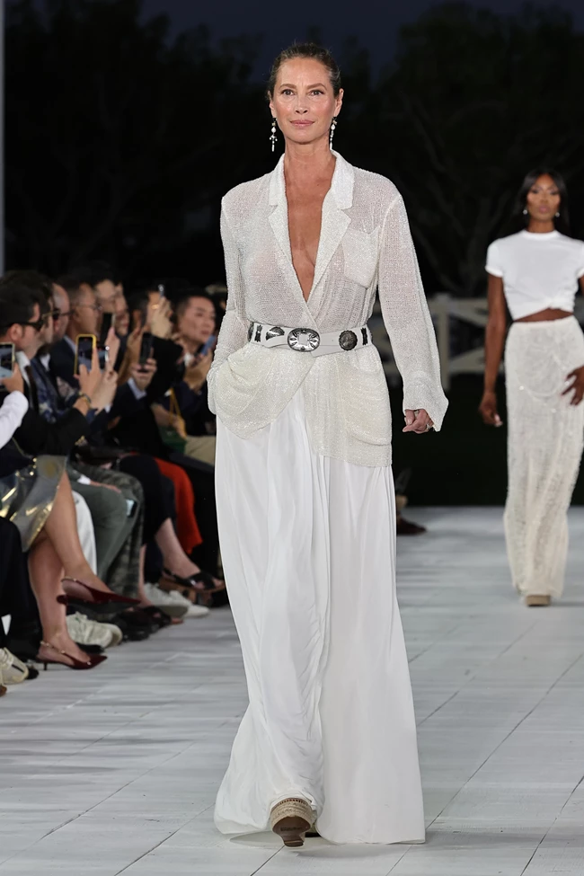 Ο εμβληματικός σχεδιαστής αποφάσισε να γιορτάσει το τέλος του καλοκαιριού με ένα αριστουργηματικό show στο σπίτι του στα Hamptons της Νέας Υόρκης. Για το catwalk, o Ralph Lauren προσκάλεσε την Naomi Campbell και την αγαπημένη του, όπως έχει παραδεχθεί σε συνεντεύξεις του στο παρελθόν, Christy Turlington, η οποία φόρεσε ένα embellished jacket με 580,000 κρυστάλλους – και όπως γίνεται αντιληπτό – ατελείωτες ώρες κατασκευής και σχεδιασμού.