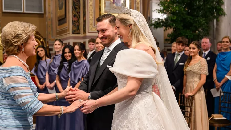 H Θεοδώρα πήρε το "κάτι παλιό" και "κάτι δανεικό" για την ημέρα του γάμου της με τον Matthew Kumar από την οικογένειά της. Εκτός από την διαμαντένια τιάρα που φορούσε και αποτελεί οικογενειακό κειμήλιο, ιστορικής σημασίας ήταν και το πέπλο της.