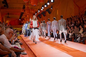 Για την περίσταση, η ηθοποιός επέλεξε μία sequin δημιουργία από τον οίκο Louis Vuitton. Το φόρεμα της είχε βαθύ, στρογγυλό ντεκολτέ, λεπτές τιράντες και ένα ψηλό σκίσιμο και βολάν στο μπροστινό μέρος της φούστας.
