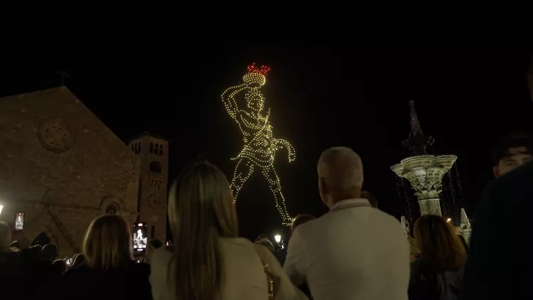 Με 1.000 drones, ο ουρανός της Ρόδου μετατράπηκε σε καμβά φωτός, όπου αναβίωσε το αρχαίο θαύμα του Κολοσσού της Ρόδου και μαζί του εμβληματικά σύμβολα του νησιού: τα ελάφια, η Κοιλάδα των Πεταλούδων, οι Ιππότες και ο Ολυμπιονίκης Διαγόρας.