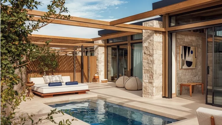 Το One&Only Aesthesis προσφέρει μια εξαιρετική επιλογή bungalows, σουιτών, κατοικιών, αλλά και βιλών που αντανακλούν το νοσταλγικό πνεύμα μιας παλαιότερης εποχής, με την αρχιτεκτονική να αποτίει φόρο τιμής στο mid-century design με φυσικά υλικά, όπως μάρμαρο και ξύλο, από την Ελλάδα σε απαλούς, γήινους τόνους. Οι πολυτελείς εξωτερικοί χώροι προσφέρουν απαράμιλλη ηρεμία με ιδιωτικές πισίνες, καταπράσινους αρωματικούς κήπους, μοναδικά σχεδιασμένα ντους αλλά και τζάκια που επαναπροσδιορίζουν την εμπειρία της φιλοξενίας δίπλα στη θάλασσα.