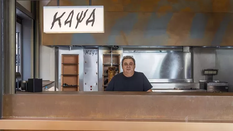 Έτσι μαυρισμένη από την καρβουνίλα ξεκινάει η ιστορία της "Κάψας", του ολοκαίνουργιου σουβλατζίδικου της Αθήνας που μόλις άνοιξε στο μικρό στενό της Σκουλενίου από την οικογένεια Πιτσιλή, τον Κωνσταντίνο Μπαμά και τον πολυβραβευμένο σεφ Χριστόφορο Πέσκια. Ζωγραφισμένη στο χέρι με κάρβουνο η ταμπέλα με το όνομα "Κάψα", αφήνει να φαίνεται από πίσω της η σούβλα του γύρου η οποία περιχαρακώνεται από διαφορετικά επίπεδα γεμάτα κάρβουνα. Εδώ, δεν ψήνονται μονάχα τα καλαμάκια και τα κεμπάπ στα κάρβουνα αλλά και ο ίδιος ο γύρος. Ο Αλέξης Πιτσιλής μας εξηγεί πως την συγκεκριμένη κατασκευή την ανακάλυψαν και μελέτησαν σε ένα ταξίδι στην Τουρκία όπου έκαναν με τον σεφ Πέσκια και κατέληξαν πως αν είναι να επενδύσεις στο κάρβουνο αξίζει… all the way.