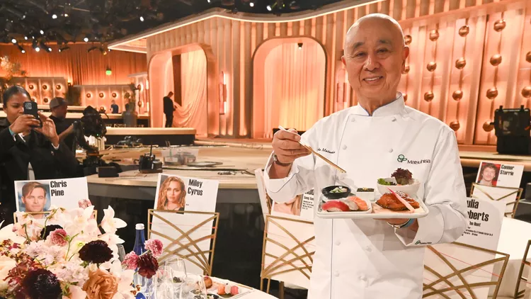 Την ίδια στιγμή, μακριά από τα φλας, η κουζίνα της τελετής λειτουργεί με ακρίβεια τηλεοπτικής παραγωγής. Ο διάσημος σεφ Nobu Matsuhisa μιλά στο Harper's Bazaar Greece με χαρακτηριστική ηρεμία. "Θα σερβιριστούν περίπου χίλια διακόσια πιάτα", λέει. "Όλα πρέπει να είναι τέλεια". Τα αγαπημένα πιάτα επιστρέφουν, με μικρές αλλά ουσιαστικές αλλαγές.