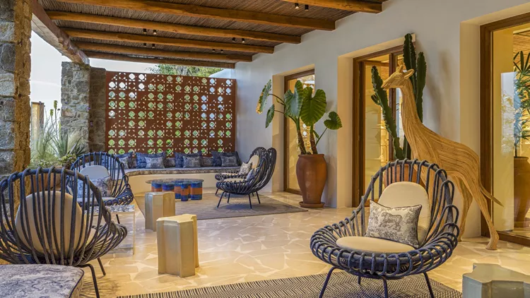 Ένας χώρος κυκλαδίτικης πολυτέλειας και υψηλής αισθητικής, ένας θερινός προορισμός πλήρως ταιριαστός στο πνεύμα του γαλλικού οίκου και την ατέρμονη διάθεση του ιδρυτή του για ταξίδια. Φυσικοί τόνοι και εκλεπτυσμένα υλικά συνθέτουν ένα τροπικό σκηνικό: ελέφαντες, καμηλοπαρδάλεις, τίγρεις, κάκτοι και φοίνικες από μπαμπού σκιαγραφούν μία ζούγκλα εξερεύνησης και ανακάλυψης, απηχώντας τα μοτίβα Toile de Jouy Sauvage και Toile de Jouy Palms, δύο εκ των χαρακτηριστικότερων του οίκου.