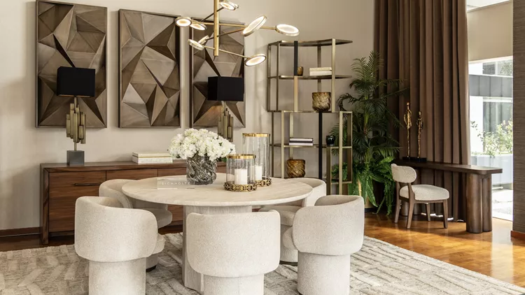 Ο Eichholtz, με δεκαετίες εμπειρίας στο υψηλής ποιότητας design, έχει από την πρώτη στιγμή διακριθεί για την ικανότητά του να μετατρέπει κάθε χώρο σε ένα σκηνικό γεμάτο σκοπό και χαρακτήρα. Η τεχνογνωσία του προσφέρει τη ζεστασιά που αγκαλιάζει το σπίτι και την άνεση που υποδέχεται φίλους και οικογένεια, ντύνοντας τον χώρο με εκλεπτυσμένους τόνους και γιορτινή πολυτέλεια – ακριβώς αυτό που χρειάζεται η πιο φωτεινή εποχή του χρόνου.