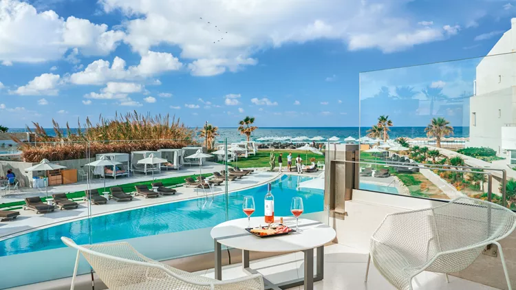 Επιλέξτε τις πολυτελείς σουίτες με ιδιωτική πισίνα και υδρομασάζ ή τις μεζονέτες, απολαύστε για ώρες τη θάλασσα, αναζωογονηθείτε στο spa και διατηρήστε τη φόρμα σας στις υπερσύγχρονες εγκαταστάσεις του γυμναστηρίου του. Βιώστε την ελευθερία που σας χαρίζει η απόλαυση του πρωινού, του γεύματος ή του δείπνου σας όχι μόνο στο κεντρικό εστιατόριο, αλλά και στην πισίνα ή στο μπαρ και απολαύστε την κρητική κουζίνα του.