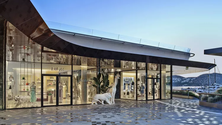 Εντός της boutique, συναντά κανείς καλοκαιρινές δημιουργίες του οίκου, από τη συλλογή Dioriviera της Maria Grazia Chiuri μέχρι την Beach Capsule της Kim Jones.