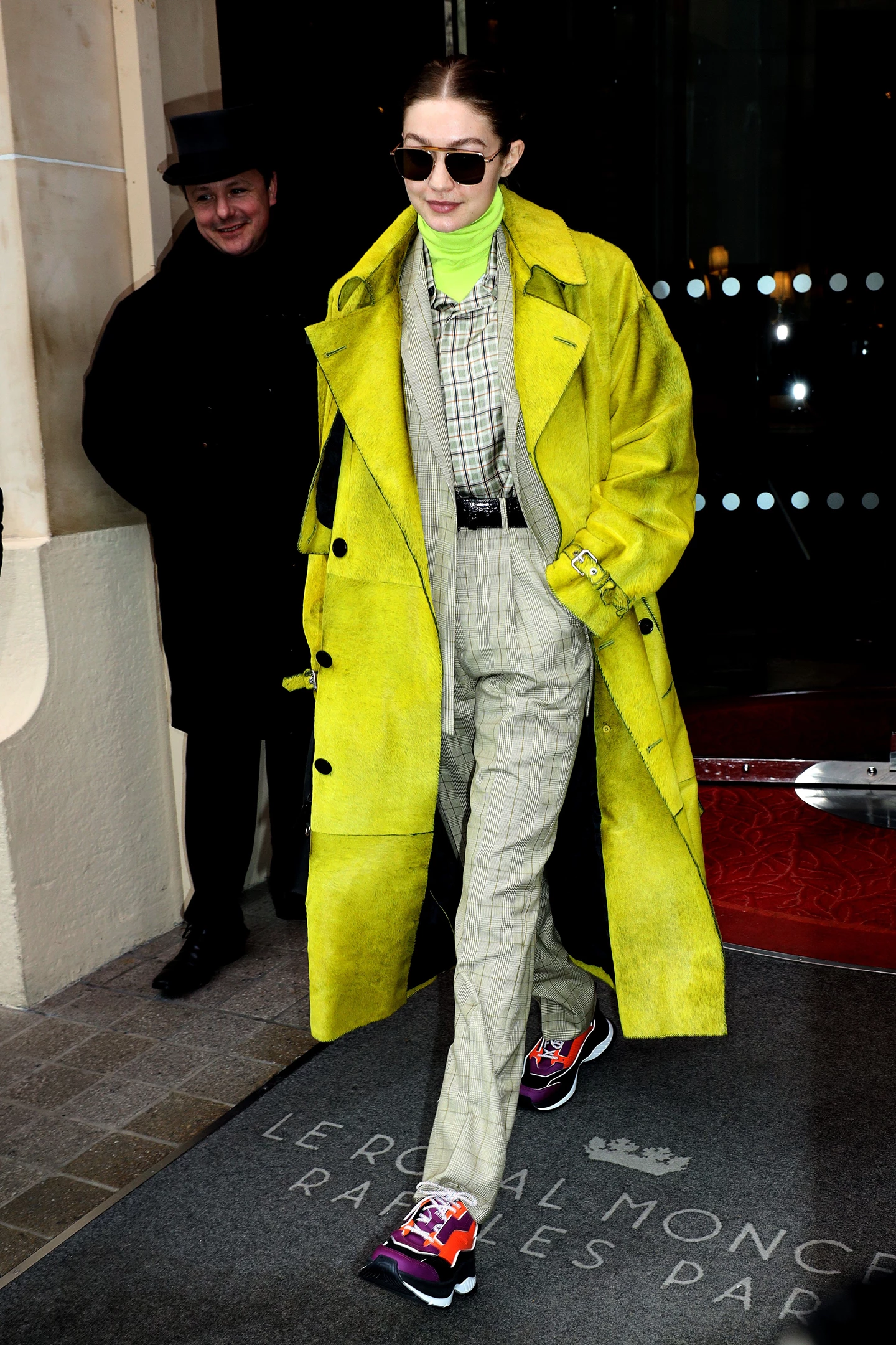 Η αποθέωση του layering και του mix n'match, με ένα καρό κοστούμι και neon χρώματα έχει την υπογραφή της Gigi.