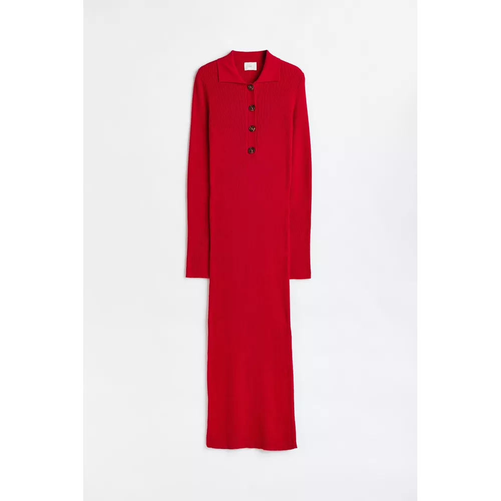 Φόρεμα με γιακά και πλέξη ριμπ, H&M.