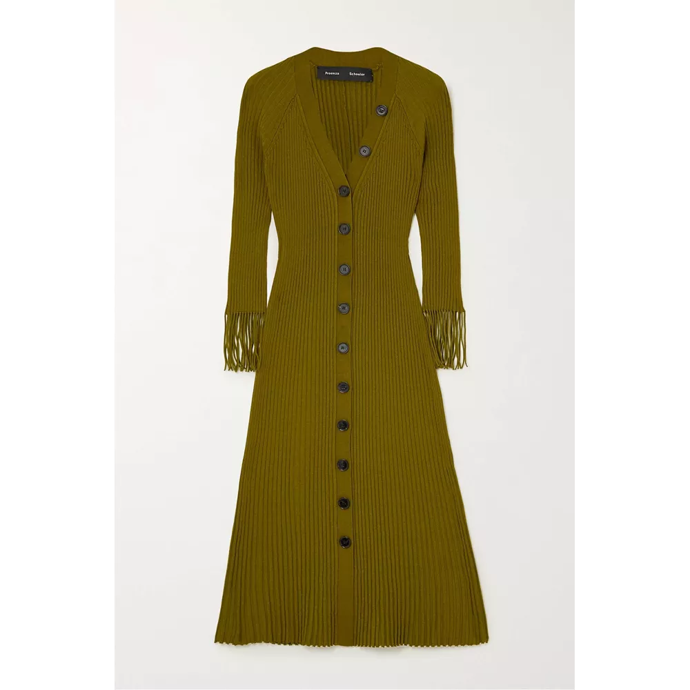 Ribbed-knit μίντι φόρεμα με κρόσια, Proenza Schouler.