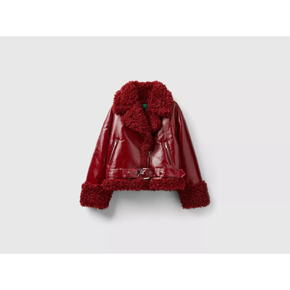 Μπουφάν από ύφασμα εφέ δέρματος και συνθετική γούνα, Benetton.