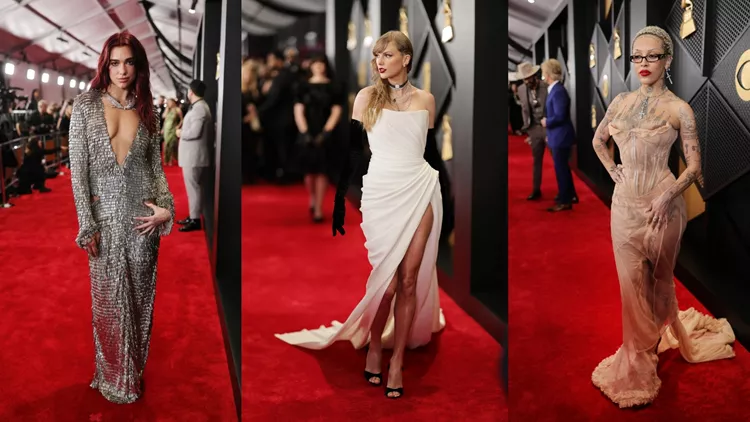 Αν για κάτι ξεχωρίζει το κόκκινο χαλί των βραβείων Grammy είναι η τόλμη που το διακρίνει. Οι επιλογές των εκπροσώπων της μουσικής βιομηχανίας είχαν πάντα μία πιο εκκεντρική και "ελεύθερη" προσέγγιση ως προς το στιλ και σχεδιαστές/ brands που σπάνια βρίσκουν τον δρόμο τους στο κόκκινο χαλί κινηματογραφικών βραβείων, είχαν πάντα μία ευκαιρία στα Grammys για να αναδείξουν τη couture πλευρά τους (και να ανεβάσουν τη μετοχές τους στη βιομηχανία της μόδας). Ο οίκος, βεβαίως, που απέσπασε την προτίμηση πολλών σταρ στα φετινά Grammys ήταν αυτός του Versace που φρόντισε να δανείσει ένα archival φόρεμά του στην Olivia Rodrigo και να δημιουργήσει custom φορέματα για τις Tyla και Victoria Monét. Η απόλυτη σταρ της βραδιάς, η Taylor Swift, εμπιστεύτηκε τον οίκο Schiaparelli, η Dua Lipa εμφανίστηκε μ' ένα φουτουριστικό metallic φόρεμα Courrèges, ενώ η Miley Cyrus μ' ένα gold metal δικτυωτό look του οίκου Margiela από τον John Galliano.