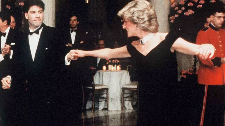 Το μπλε φόρεμα σχεδιάστηκε από τον Victor Edelstein και η πριγκίπισσα το φόρεσε σε Gala του Λευκού Οίκου. Αργότερα την ίδια μέρα, η Diana και ο Travolta χόρευαν μαζί στο δωμάτιο και οι φωτογραφίες τους έγιναν παγκόσμια πρωτοσέλιδα.