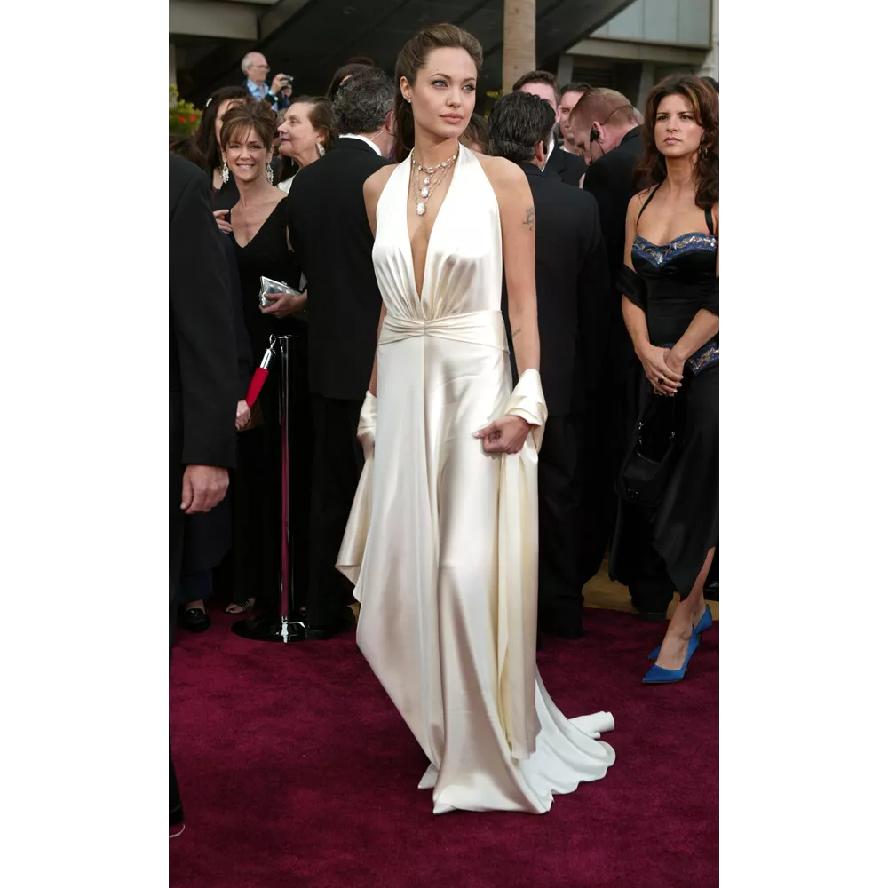 H Angelina Jolie από τις πρώτες εμφανίσεις της στο red carpet έδειξε την αδυναμία της στο γυαλιστερό σατέν και ξεκινώντας με σέξι slip dress και halter neck στην πορεία παραδόθηκε στη γοητεία των σατέν μαύρων φορεμάτων και των metallic wrap ή ντραπέ. Δείτε κάποιες από τις χαρακτηριστικότερες εμφανίσεις της: