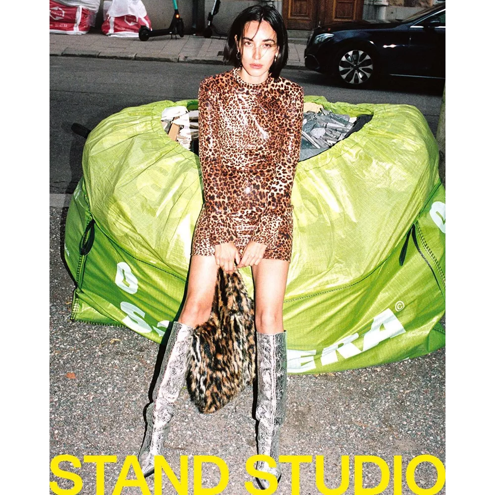 Παρά τα υλικά που διαχειρίζεται, που θα μπορούσαν να κατηγορηθούν εύκολα ως μη συμβατά με την ηθική μόδα, το Stand Studio εφαρμόζει το sustainability στις συλλογές του. "Τα δέρματα που χρησιμοποιούμε είναι υποπροϊόντα της βιομηχανίας του φαγητού, αλλά πάντα προσπαθούμε να γινόμαστε ακόμα καλύτεροι", λέει η Νellie Kamras, η οποία προσθέτει ότι χρησιμοποιεί και αυθεντικό και ψεύτικο δέρμα στα κομμάτια της. "Υπάρχουν πολλά πλεονεκτήματα στη χρήση αυθεντικού δέρματος γιατί είναι φυσικό προϊόν, ωστόσο εμείς προσπαθούμε να βρούμε τα καλύτερα faux υλικά που φτιάχνονται από ανακυκλωμένο πολυεστέρα αν και η προσφορά είναι πολύ μικρή πια".