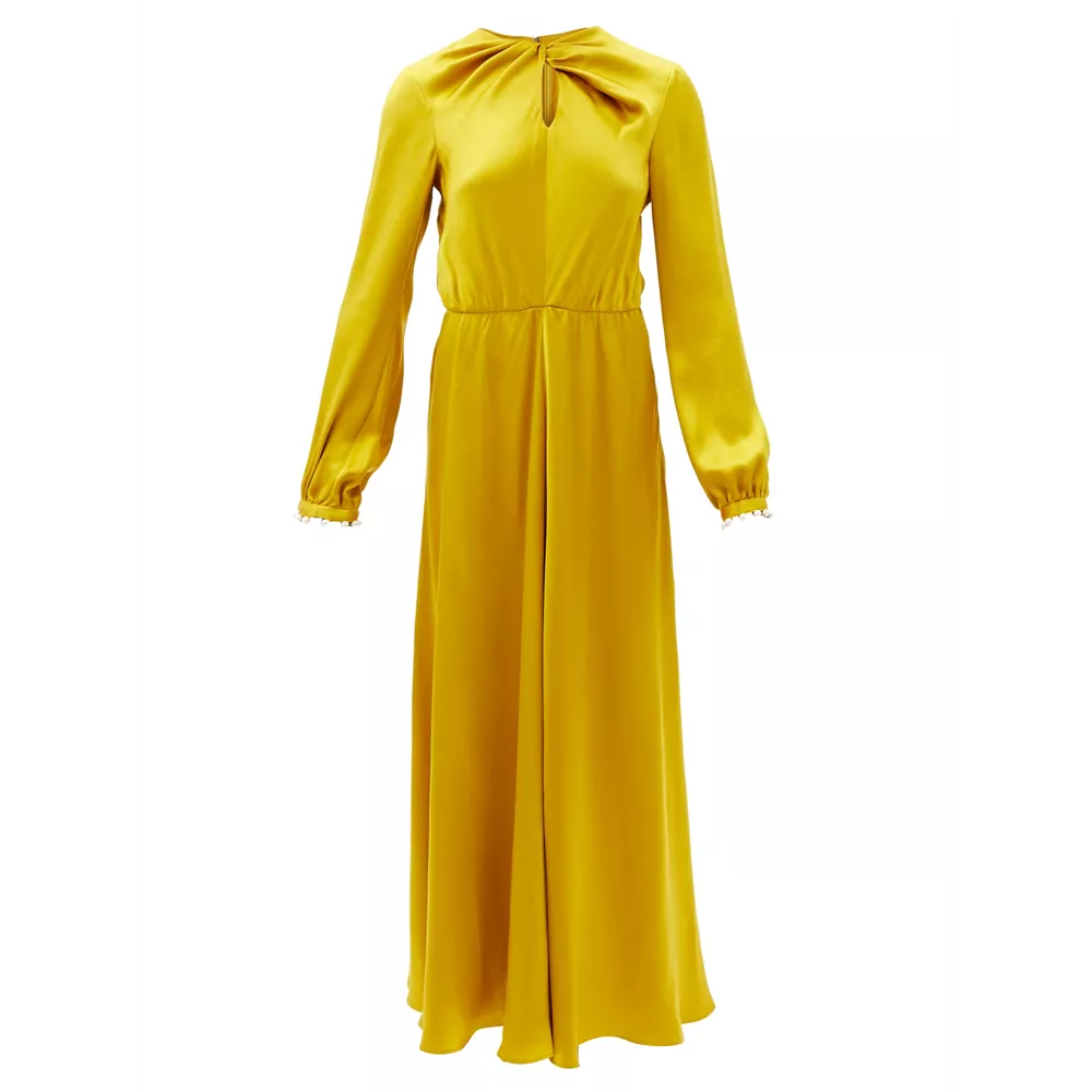Golden yellow σατέν μάξι φόρεμα Giambattista Valli, matchesfashion.com.