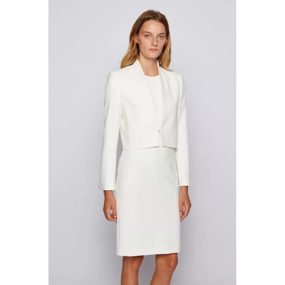 Αμάνικο μίνι φόρεμα σε ίσια γραμμή και cropped σακάκι Boss, hugoboss.com.