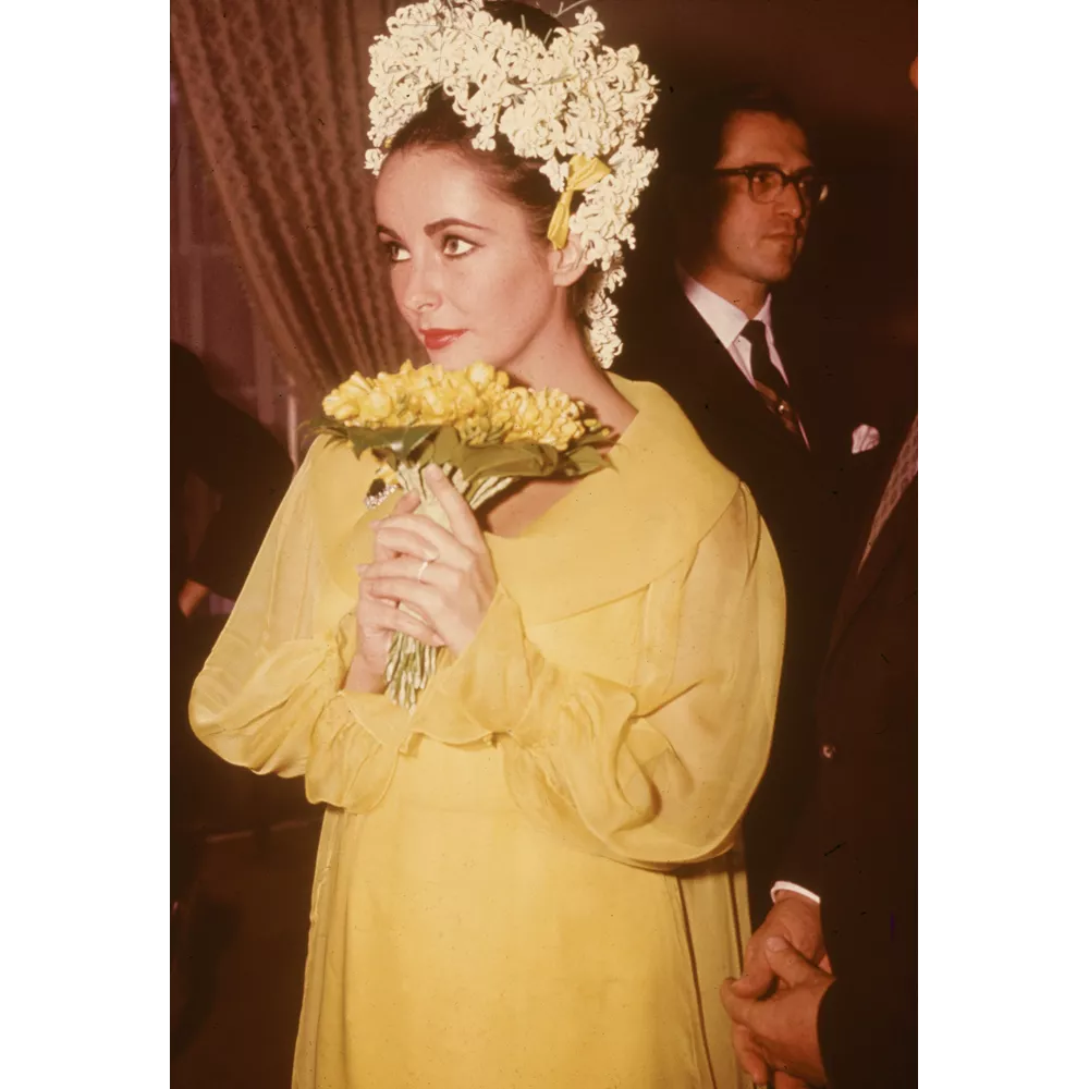 H Elizabeth Taylor με κίτρινο φόρεμα στον γάμο της με τον Richard Burton το 1964.