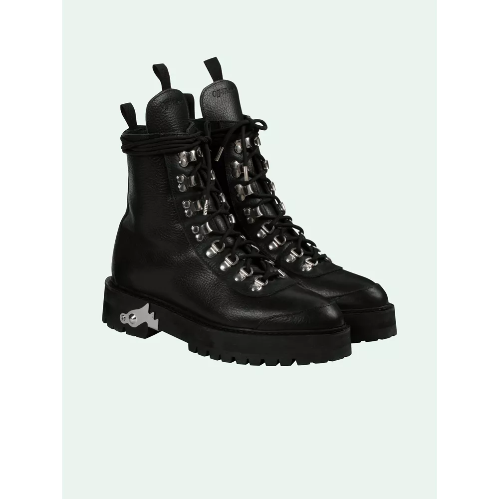 Δερμάτινε ankle-high lace-up μπότες πεζοπορίας, Off- White.