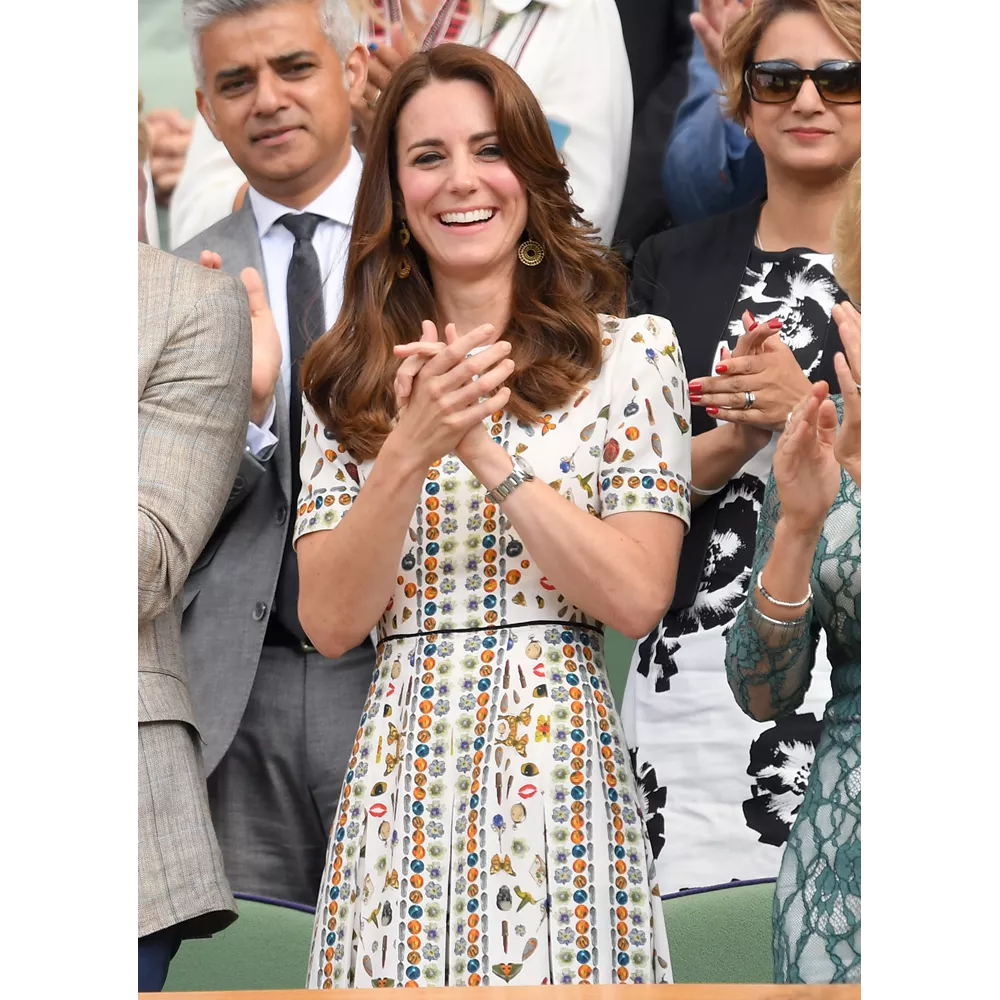 H Kate Middleton παρακολουθεί τον τελικό ανδρών στο πρωτάθλημα τέννις του Wimbledon το 2016 φορώντας ένα εμπριμέ φόρεμα του οίκου.