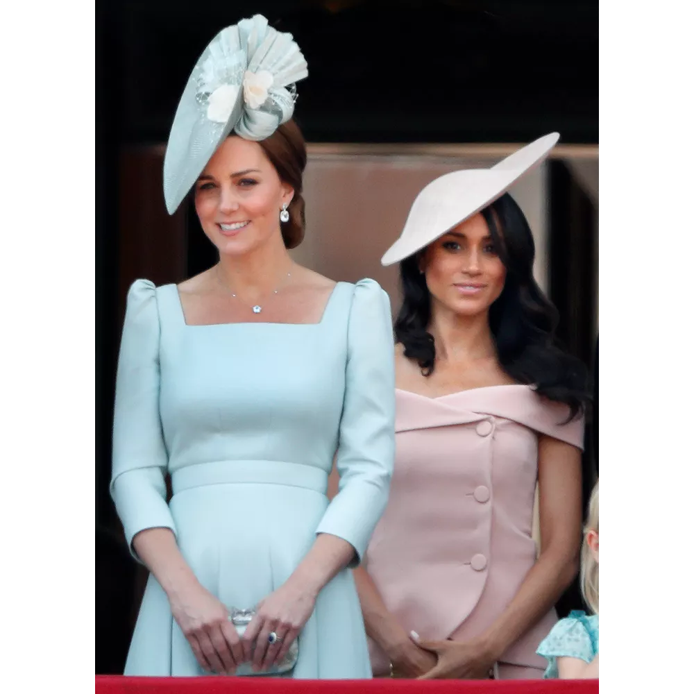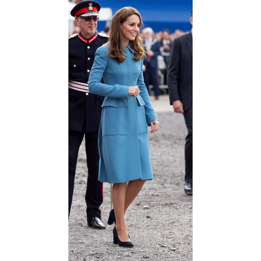 Στους εορτασμούς για το Trooping the Colour το 2018 μ' ένα γαλάζιο φόρεμα με τετράγωνη λαιμόκοψη.