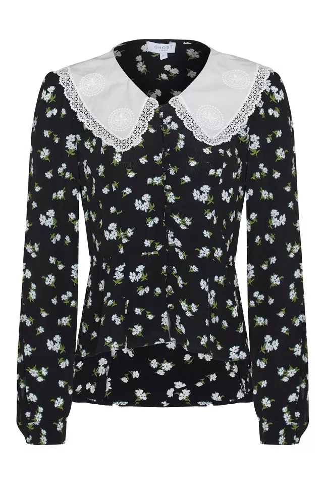 Φλορά μπλούζα «Kala» με oversized βαμβακερό κεντημένο κολάρο, Ghost London.