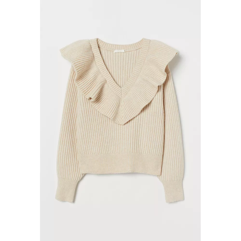 Φαρδύ πουλόβερ ριπ πλέξη με μεγάλο γιακά, H&M.