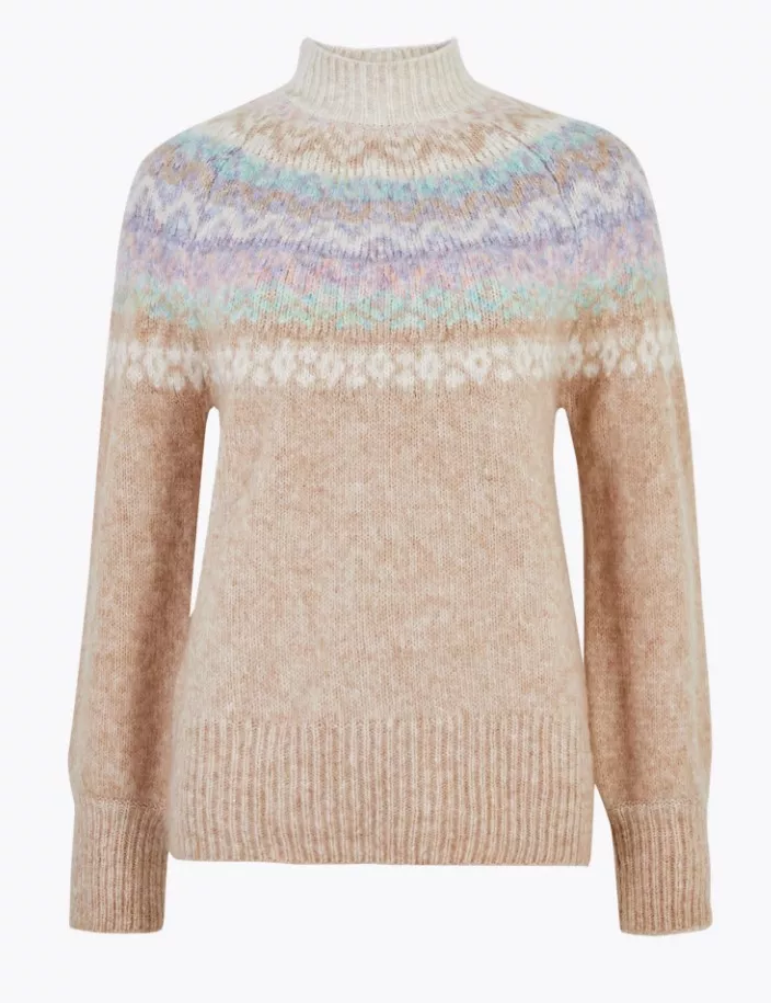 Πουλόβερ με ψηλό γιακά σε χαλαρή γραμμή με νορβηγικό σχέδιο, Marks&Spencer.
