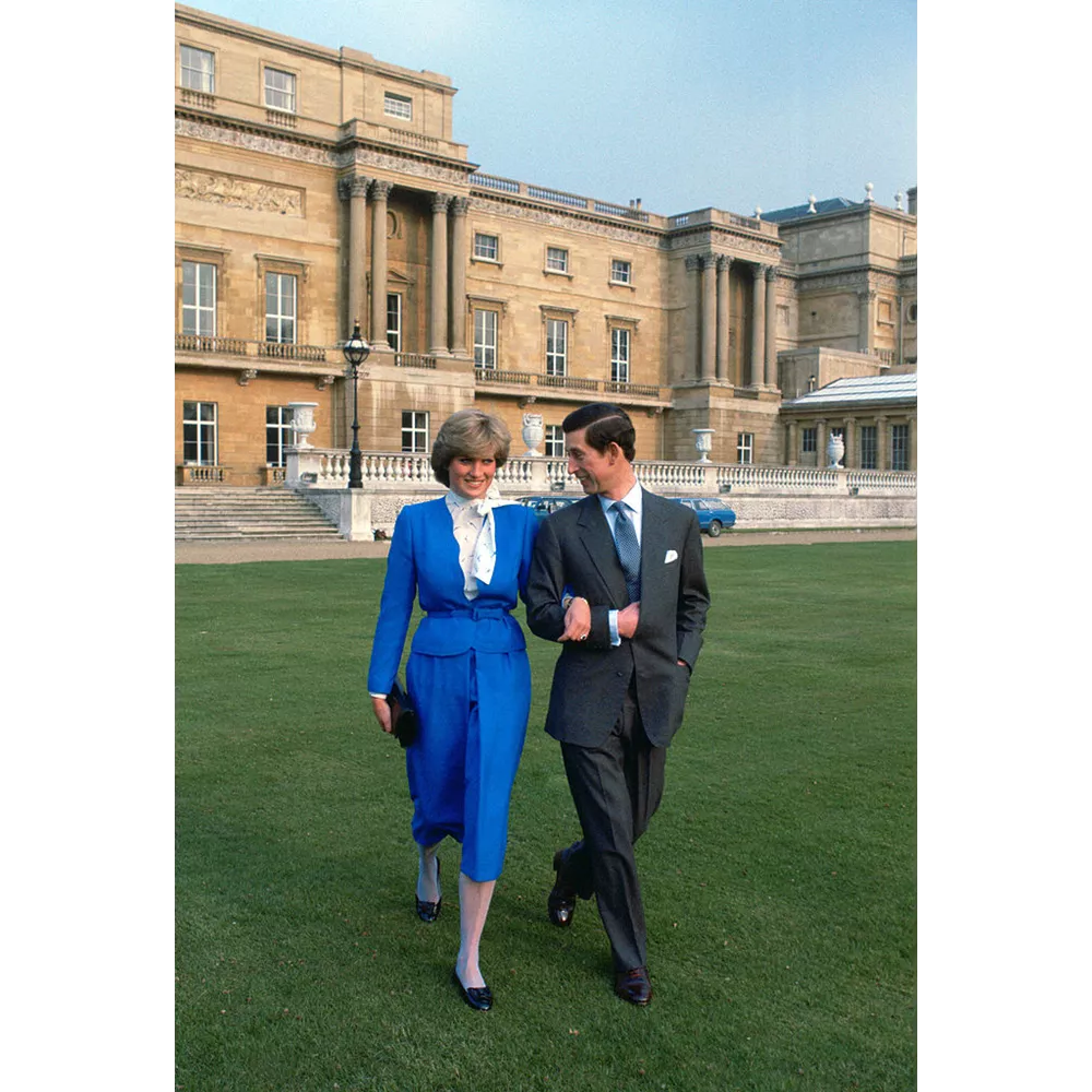 Στον αρραβώνα της με τον Πρίγκιπα Κάρολο, η Diana εμφανίστηκε μ'ένα κοστούμι με μακριά φούστα σε royal blue.