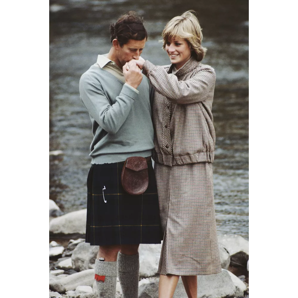 Στιγμιότυπο από τον μήνα του μέλιτος στο Balmoral όπου η Diana φοράει ένα tweed κουστούμι του Bill Pashley.